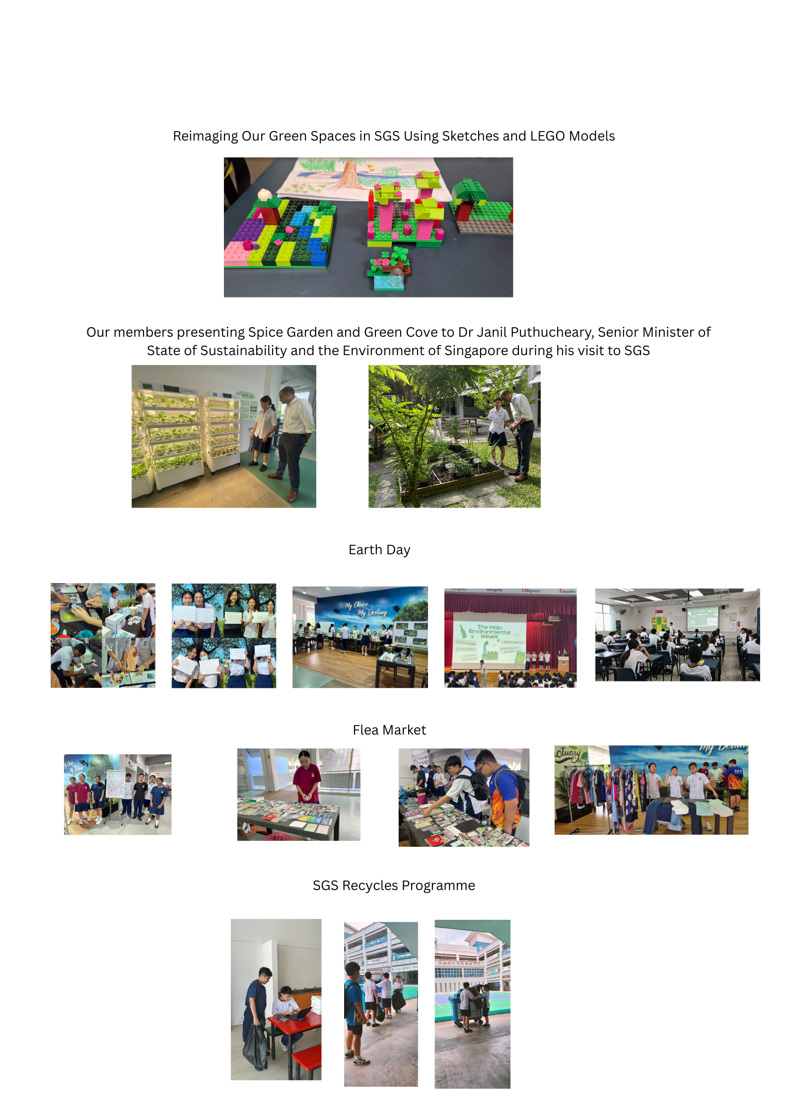Culture: We spearhead school-wide initiatives like the SGS Recycles Programme and lead campaigns for events like Earth Day, Flea Market, Food for Heart and World Wildlife Day, fostering an eco-conscious culture campus-wide.